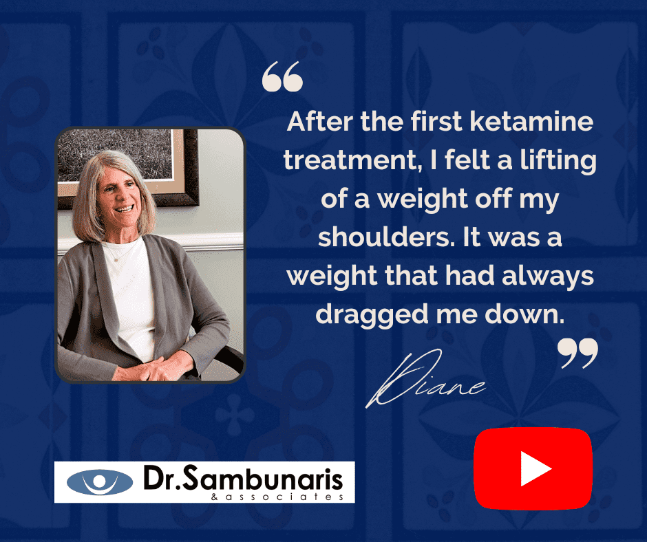 To determine if you’re a good candidate for ketamine therapy, schedule an appointment with Dr. Sambunaris. Following a physical exam, a review of your medical history, and a discussion of your symptoms, Dr. Sambunaris will tailor a treatment plan to help you improve your quality of life.